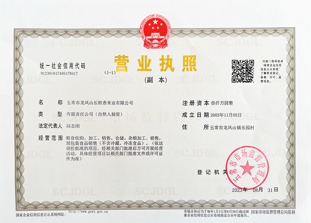 五常市龍鳳山長粒香米業有限公司 地址:五常市龍鳳山鎮樂園村